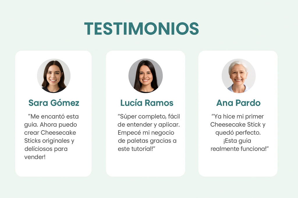 Solo tus ganas de empezar y esta guía clara, directa y pensada para ayudarte a crear, empacar y vender tus Cheesecake Sticks desde casa, aunque nunca hayas vendido un postre antes.